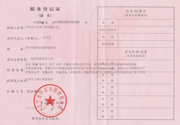 北环公司国税登记证