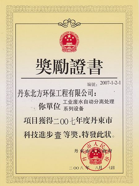 市科技进步一等奖证书